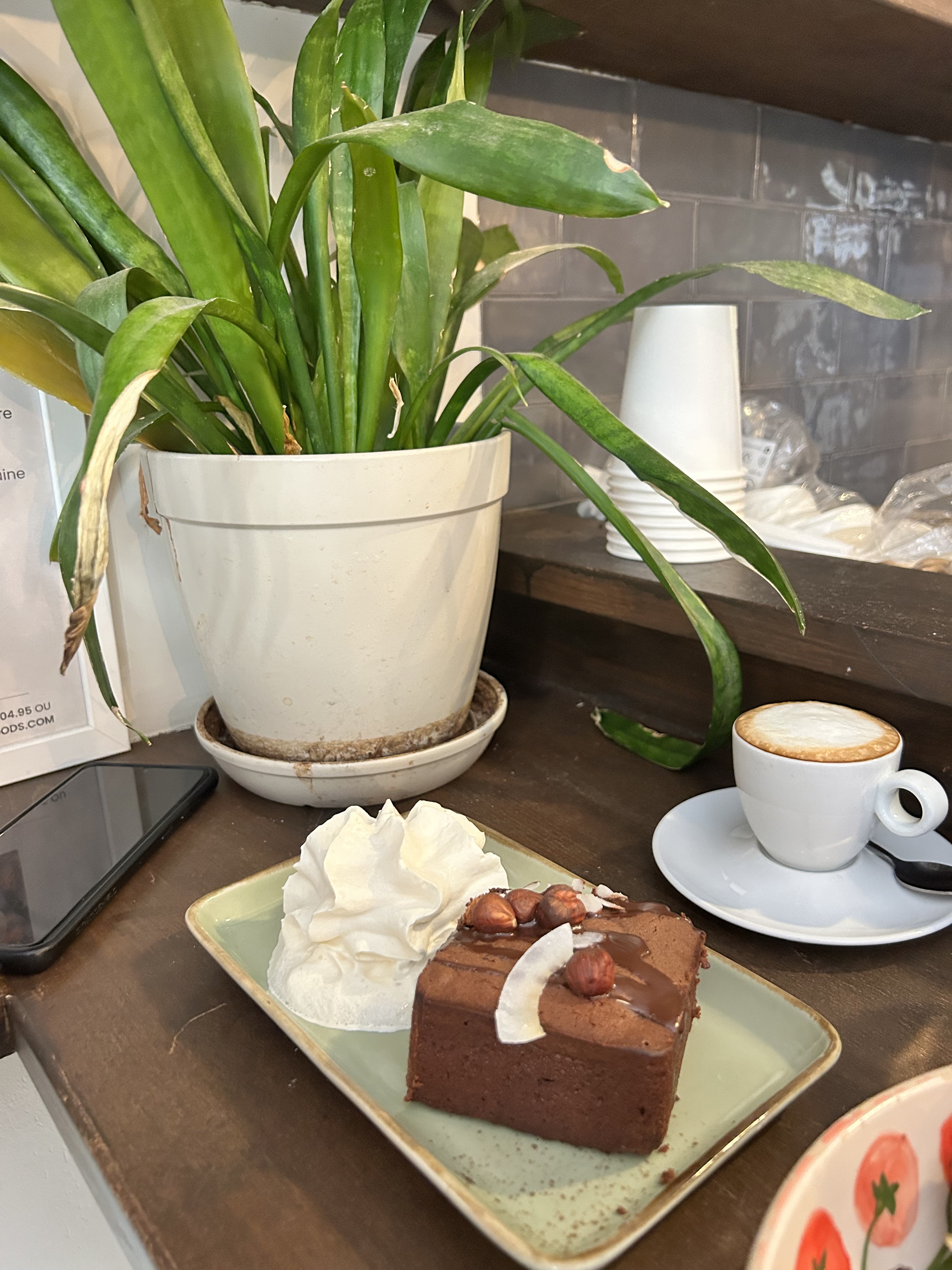 Posté le 31/10/2023 à 09:20"Un endroit qui semble très sympathique au premier abord avec de la musique et la lumière tamisée donc ambiance plutôt détendue. Le service est incroyablement lent. Les desserts ne sont pas très bons, notamment le brownie qui a une texture vraiment particulière, trop coulante, écoeurante. Les cafés étaient bons. Si vous voulez prendre un café rapidement, passez votre chemin."